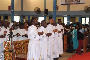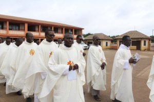 The friars were ordained by the Most Reverend Matthew Kwasi GYAMFI, Bishop of Sunyani. In his homily, he advised the friars to beware of spiritual worldliness―when priests and religious develop a hunger and desire for social clout. He further admonished the friars to always be vigilant and to seek the grace of God in order to track down any sign of this spiritual worldliness and work on it. In addition, he asked them to cherish their vocation and the privilege they have received in being called and admitted to the priesthood of Christ.