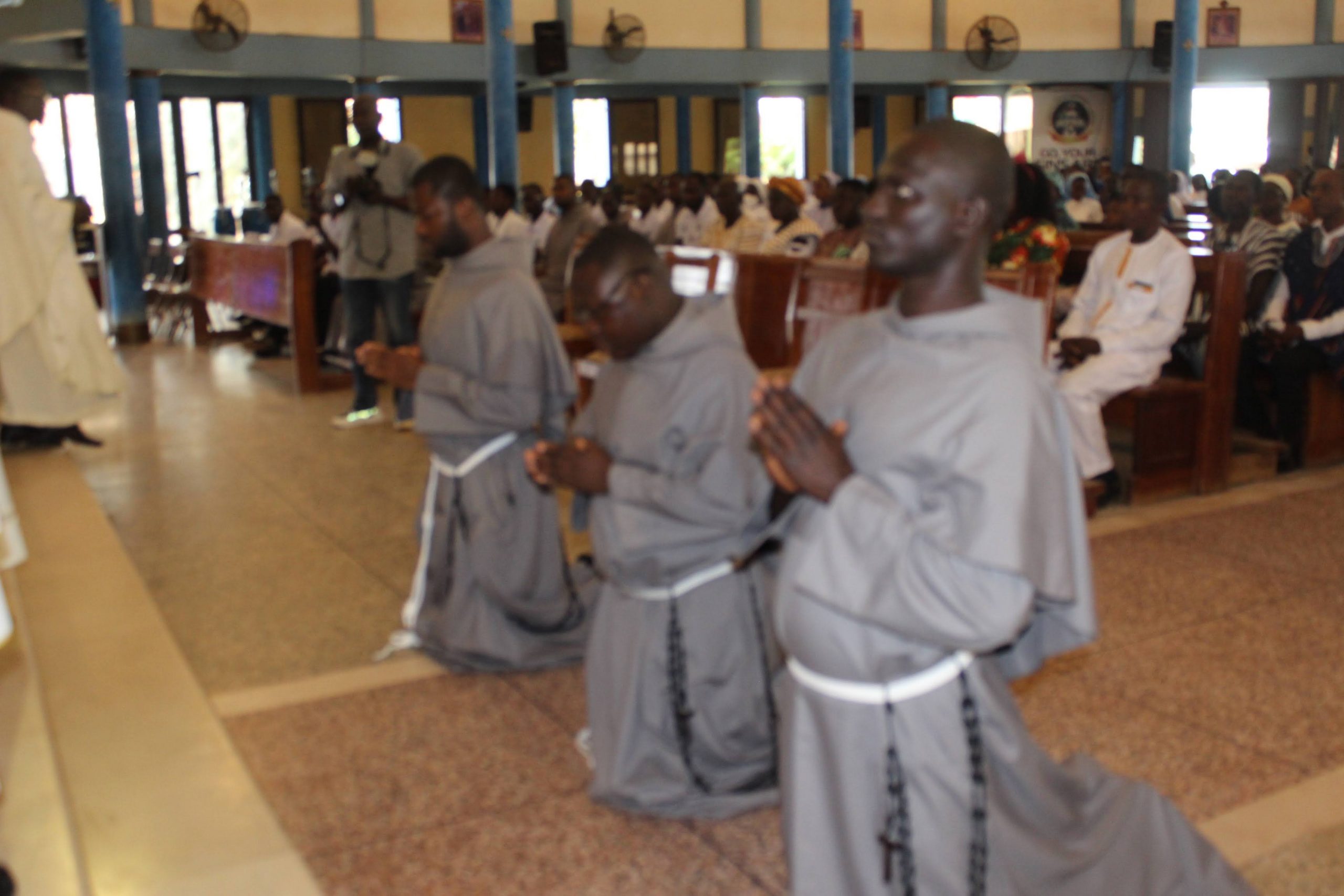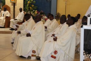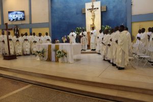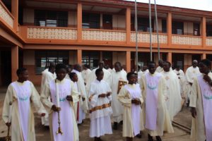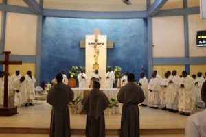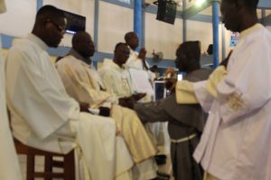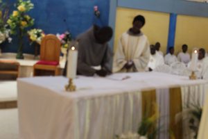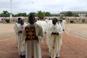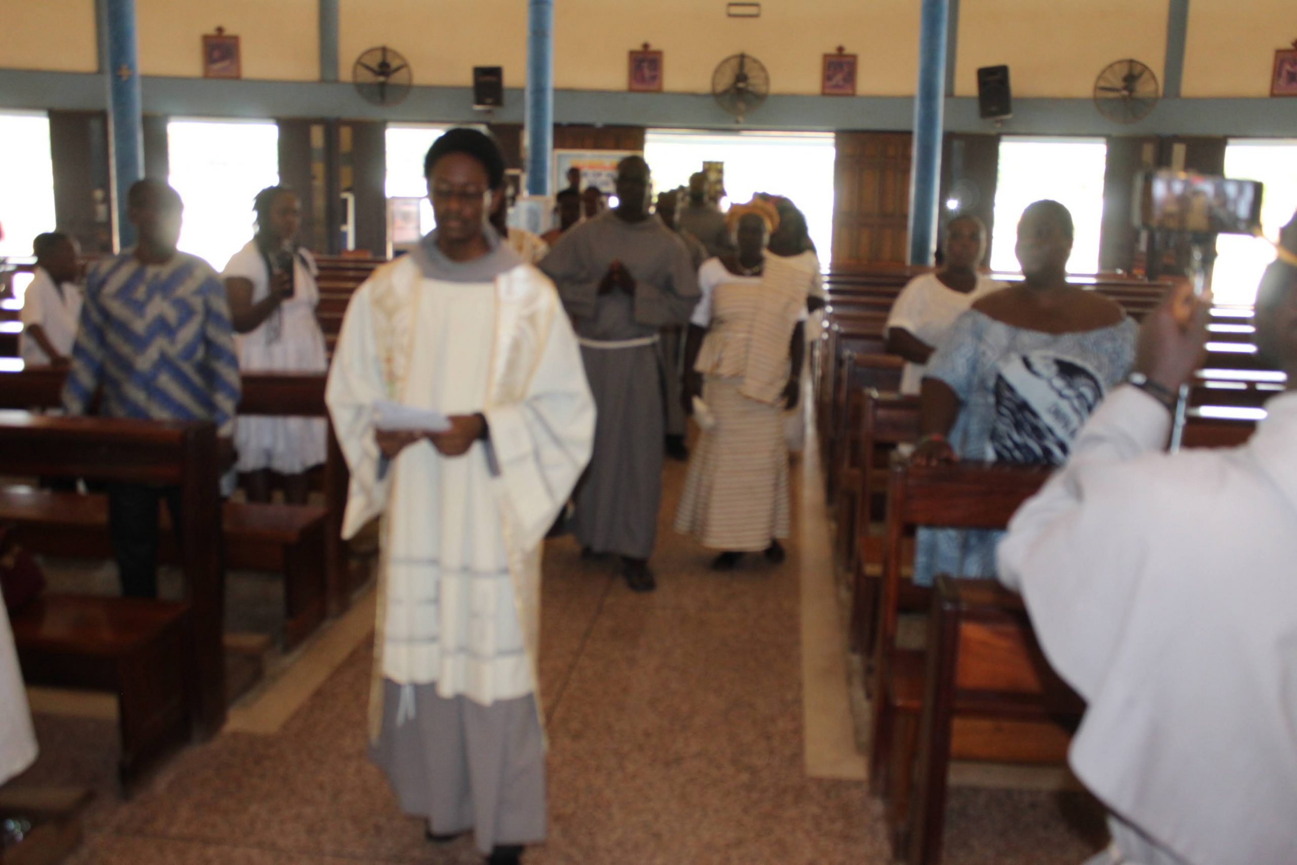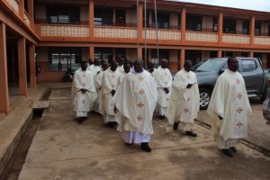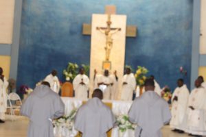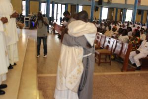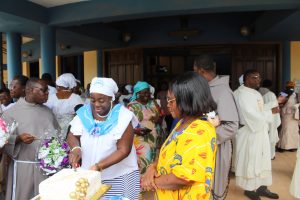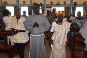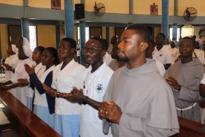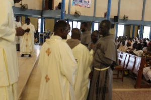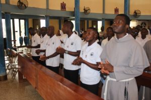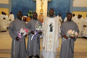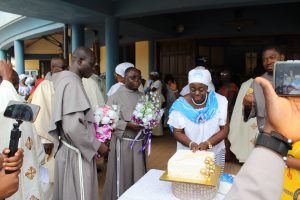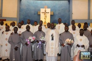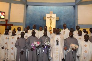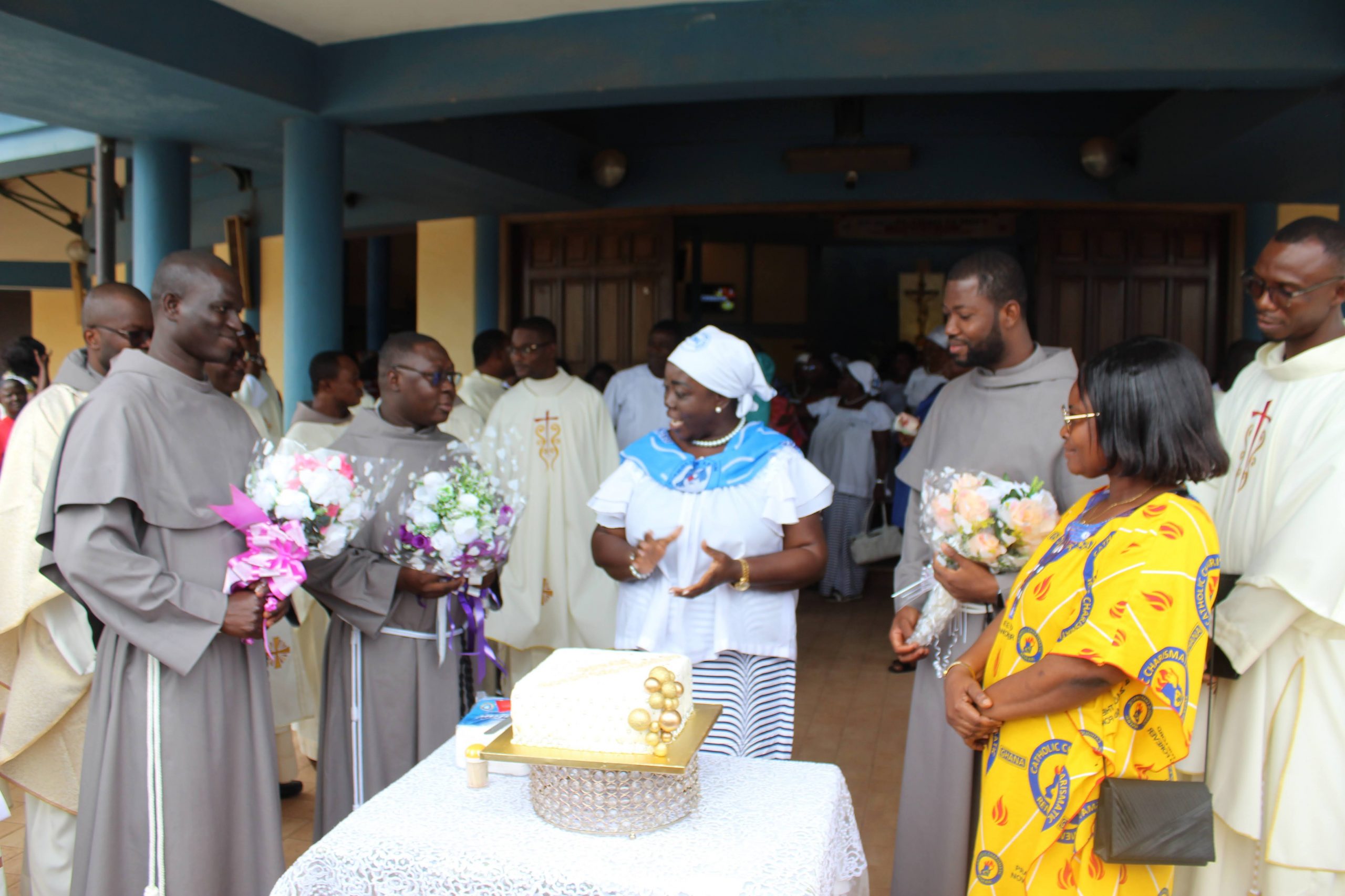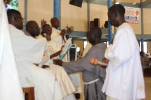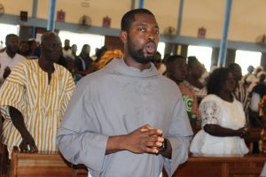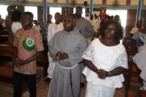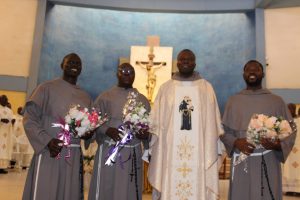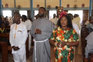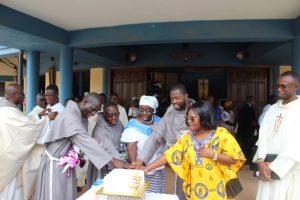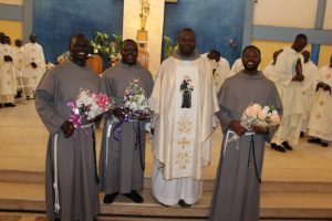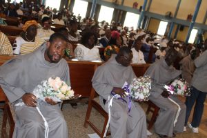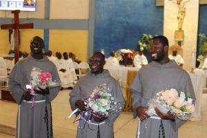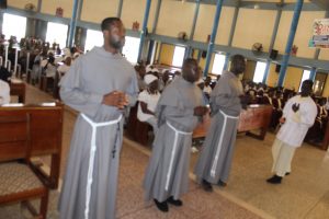 Those attending included the Provincial Custos, Friar Vitus Edem Yao MENSAH, who received the friars’ vows; the Pastor of the Sacred Heart Parish, Friar Stephen Oscar AMO; friars from the various friaries; priests; men and women religious; family; friends; parishioners and people of goodwill. Some friars were unable to attend due to ill health and other exigencies. Nevertheless, the majority of the friars attended. The Provincial Custos, Friar Vitus Edem Yao MENSAH, presided over Mass. In his homily, he advised the newly-professed, and everyone present to respond to the call of God with all their heart. He urged them to be ready to inconvenience themselves for the sake of the Gospel. He exhorted them to emulate our founder St. Francis by living the Gospel life. He encouraged them to follow the good example of role models who have lived this life in all sincerity and have become beacons of hope to the Order and the Church at large. The parish gave each of the newly professed friars a bouquet of flowers and a token envelope for saying their final “yes” to the Lord. We thank God for the lives of these confreres and we are grateful to the Sacred Heart Parish for its generous donation on this occasion. We thank all those who made this beautiful and colorful celebration possible.